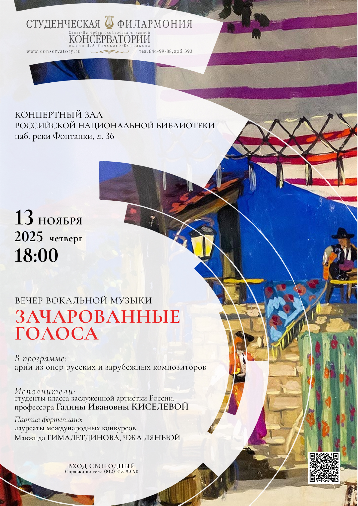 Концерт представит слушателям жемчужины вокальной музыки: в исполнении студенток Санкт-Петербургской консерватории прозвучат знаменитые арии из опер русских и европейских композиторов XVIII–XX веков от Моцарта и Глинки до Верди и Пуччини.