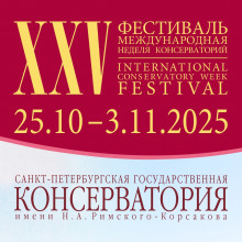 С 25 октября по 3 ноября 2025 Санкт-Петербургская консерватория проводит юбилейный XXV фестиваль «Международная неделя консерваторий». Четверть века — значимая веха в истории проекта, направленного на профессиональный диалог и представление лучших достижений многонациональных музыкальных традиций. Фестиваль на протяжении двадцати пяти лет объединяет ведущие музыкальные вузы России и зарубежья, укрепляя и развивая культурные связи. Программа масштабного проекта включает разнообразные концертные, научные и образовательные мероприятия.