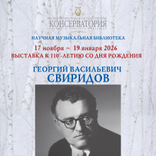 17 ноября Научная музыкальная библиотека открывает выставку, посвященную 160-летию со дня рождения выдающегося советского композитора, пианиста и общественного деятеля - Георгия Васильевича Свиридова. На выставке представлены материалы из фондов библиотеки, архива и медиацентра консерватории. Уникальным является Личное Дело студента Георгия Свиридова 1936 года, а также его переписка с профессором Ручьевской Е.А.