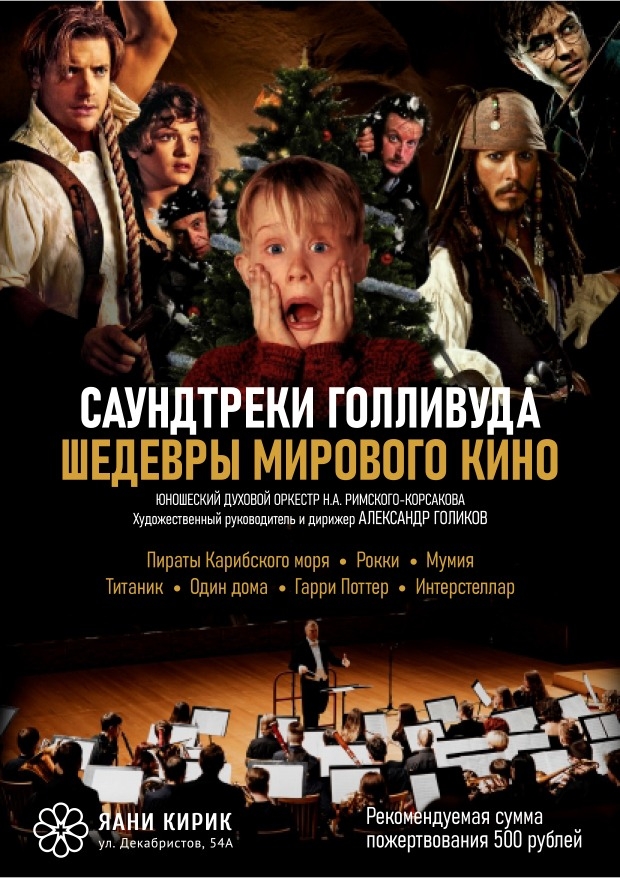 Вас ждёт захватывающее музыкальное путешествие по легендарным фильмам и их незабываемым саундтрекам - прозвучит музыка из культовых фильмов, таких как «Один дома», «Титаник», «Гарри Поттер», «Интерстеллар», «Пираты Карибского моря», «Мумия» и многих других.
