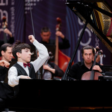 В 1 отделении концерта в исполнении учащегося 9 класса ССМШ Михаила ПИРОЖЕНКО был исполнен концерт Ф. Листа № 1 Ми-бемоль мажор для фортепиано с оркестром и III часть концерта Э. Сежурне для маримбы с оркестром (солист - Андрей ТАРАНУХА). Аккомпанировал солистам симфонический оркестр Государственного академического Мариинского театра под управлением Народного артиста Российской Федерации Валерия ГЕРГИЕВА.