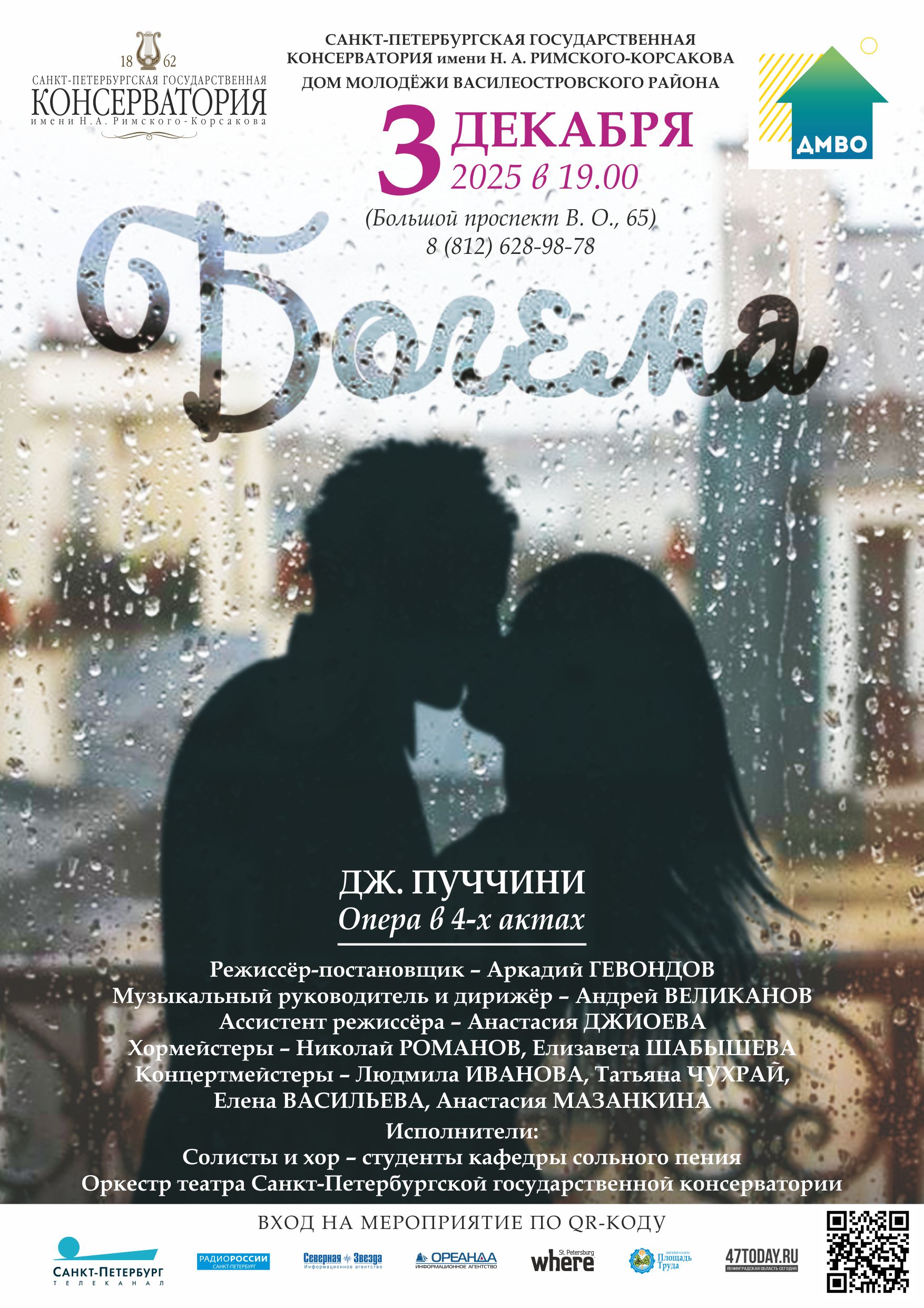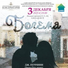 3 декабря 2025 года в 19:00 на сцене Дома молодежи Василеостровского района Санкт-Петербургская государственная консерватория имени Н.А. Римского-Корсакова представит оперу Джакомо Пуччини «Богема».