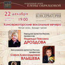 Третья встреча цикла познакомит слушателей со студентами классов сольного пения народной артистки России, профессора Надежды Павловны Дроздовой, заслуженной артистки России, профессора Софии Александровны Ялышевой, а также доцента Антонины Александровны Шестаковой-Реймерс. Молодыми музыкантами будут исполнены шедевры камерно-вокальной и оперной классики.