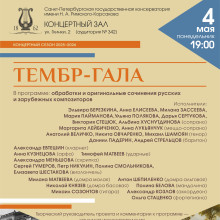 Концертный сезон в Консерваторском зале завершится традиционным вечером камерной музыки «Тембр-гала», подготовленным доцентом кафедры теории музыки, кандидатом искусствоведения Татьяной Александровной ЛИТВИНОВОЙ.