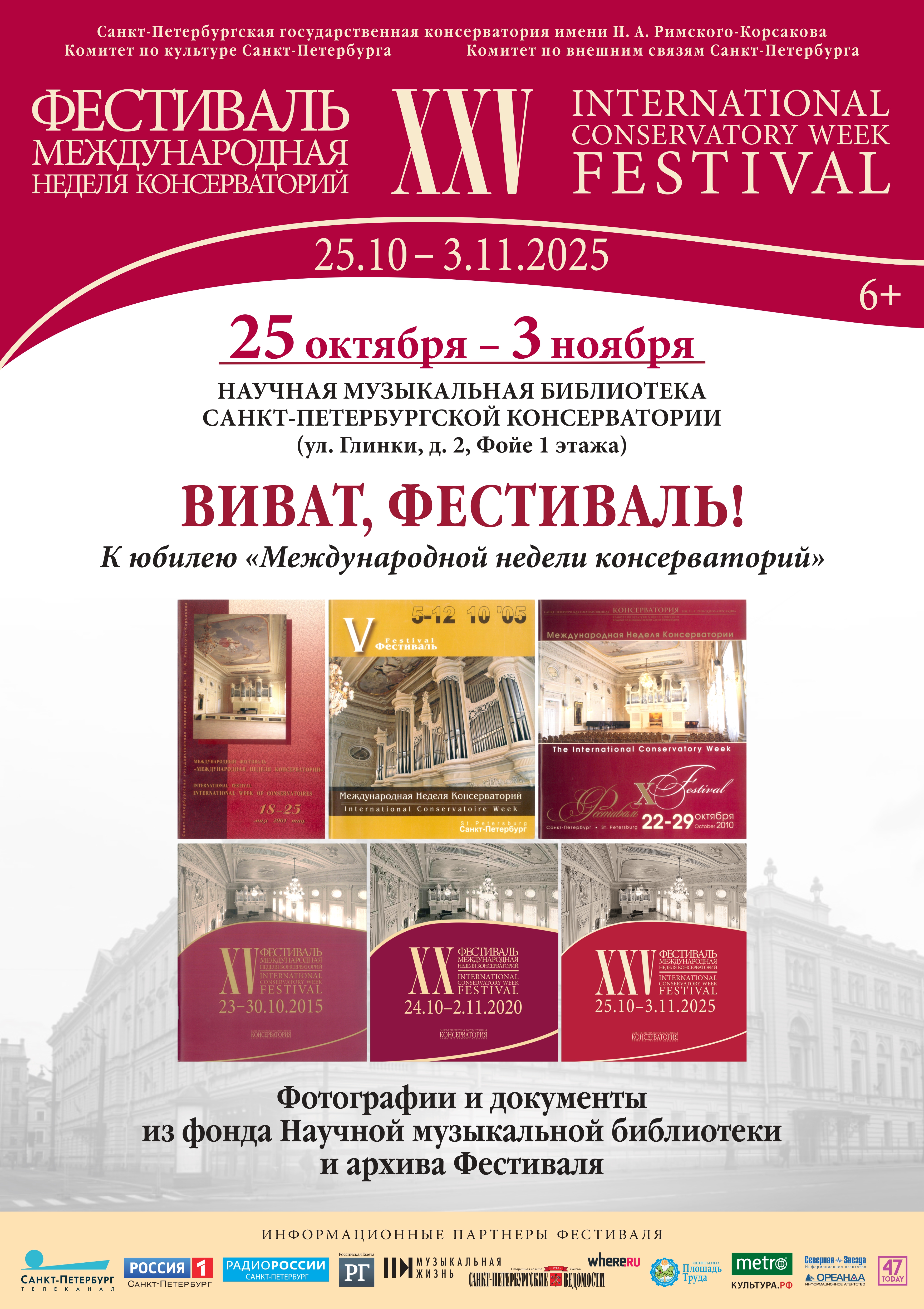 25 октября в рамках Международной недели консерваторий Научная музыкальная библиотека открывает выставку фотографий и документов из фонда библиотеки консерватории и архива Фестиваля. Вы сможете проследить двадцатипятилетнюю историю Фестиваля по фотографиям и афишам, буклетам и программам, сувенирам и поздравлениям. Географический охват потрясает, а известные имена выдающихся музыкантов приводят в восторг.